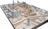 解决方案 建筑模型是建筑方案可视化途径。传统制作方式耗时耗力,还原缩小后的细微结构困难,制作成本昂贵,会放弃重要的小细节而造 成负面影响。3D打印以微缩实体的方式有效地传达设计理念,并具备操作简单,可直观的反映出建筑物的结构、尺寸等相关特点 降本提效 直接打印出的沙盘模型,与传统方式相比大大缩短制作时间 成本以及金钱成本 精细度高 精细度高,光敏树脂材料成型,成品坚固耐用,可以打印出0.03mm 左右的细微结构和0.06mm壁厚的结构 等比例微缩实体 进行快速的建造和成型,创建详细、准确的比例模型,所有 细节完美呈现,展示效果极佳 材料种类丰富 料选择的范围广,尼龙和树脂是主要材料,可根据需求增加透明、金属 (钢、铜)等不同的元素,也可以后期上色达到想要的效果